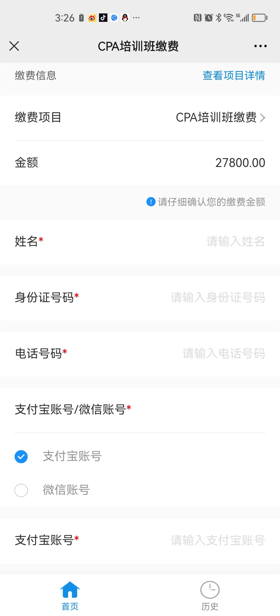 2.4、缴费成功后,可在“历史”中看缴费记录,或者在微信账单中查看: