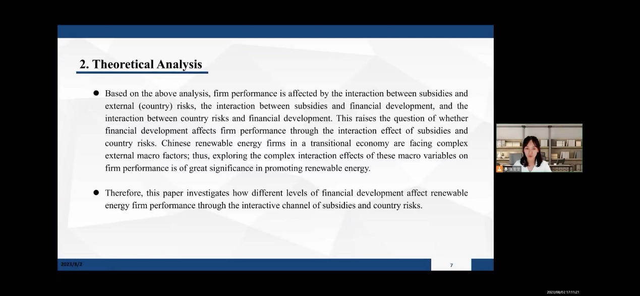 202384日,第三届互联网金融与数字经济国际学术会议(The 3rd International Conference on Internet Finance and Digital EconomyICIFDE 2023)在线上召开。管理学院会计与财务系教师张雯雯博士参会学习并作 《The Dynamic Threshold Effect of Financial Development on the Country Risks – Subsidies – Firm Performance Nexus: Evidence from Chinese Renewable Energy Firms》论文汇报交流。