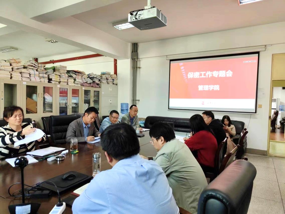 11月9日下午,管理学院在3E-401召开保密工作专题会。会议由党委书记肖东华主持,班子成员出席会议并讲话,学院党支部书记、系室主任、全体辅导员老师参加会议。