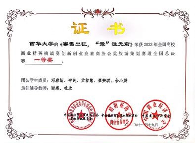 全国高校商业精英挑战赛信息化创新创业竞赛由全球华人营销联盟主办,中国国际贸易促进委员会商业行业委员会和新加坡营销协会共同协办,面向全国高等院校本科生的商业创意大赛。旅游策划赛道作为其中一个赛道,旨在考察学生对旅游市场的理解和对旅游策划的创新思维。我院学子经过长达3月的努力,经过激烈的初赛和决赛的比拼,最终在120支总决赛队伍中脱颖而出。本次获奖是我院在该项赛事该赛道中首次获得全国一等奖,对我院学子未来竞赛之路具有重要意义。