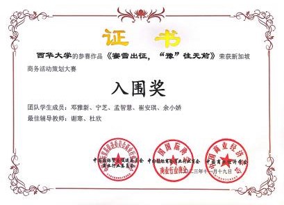 为提高我院学子商业创意能力,让betway88西汉姆联学子获得更多的实践经验和机会,我院积极组织学生参与全国商业经营挑战赛(创新创业赛)。在11月19日结束的河南三门峡市举办的全国商业精英挑战赛创新创业赛(会奖旅游策划赛道)总决赛中,我院物流专业学子邓雅新、宁芝、孟智慧、崔安琪、余小娇组成的众程旅游策划有限公司队在指导老师谢寒、杜欣的精心指导下以作品“蜜雪出征,“豫”往无前”勇猛夺魁,喜获全国一等奖的好成绩,同时入围新加坡商业活动策划大赛。两位指导老师也获得了“最佳辅导教师”称号。
