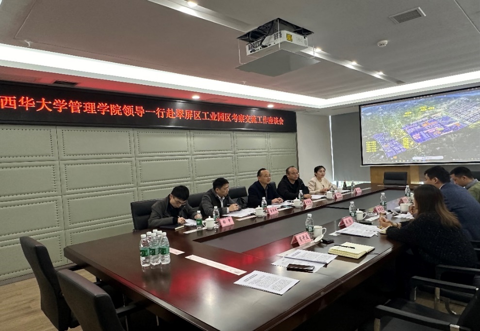 为了深入了解宜宾市翠屏区经济社会及产业发展现状、进一步加强服务地方政府,11月22日至23日,管理学院副院长牟绍波一行赴宜宾市翠屏区发改局、经信与科技局和工业园区管委会调研交流,管工系主任黄国栋、管理学院宜宾校区办公室主任徐长通、管工系副教授段华薇、会计与财务系杨曾博士参加调研交流。