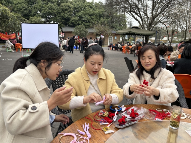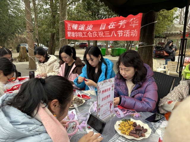 上午10时,80余名教职工到达活动场地集合,女职工们积极参与龙年挂件手工DIY活动。大家在手工制作中感受传统文化,交流工作生活,现场氛围融洽。午餐后,教职工们或在场地内座谈交流,分享自己在教学、科研中的思考和规划;或前往就近公园参观,交流同事间感情,放松身心。