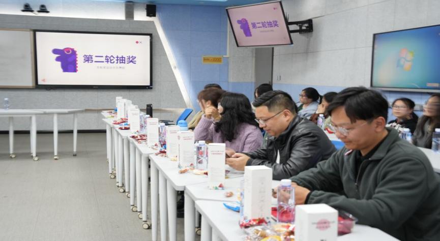 整场活动中,同学们还组织了娱乐环节。有陈嘉熙同学精心准备的歌曲《city of stars》、认识同学游戏以及贯穿活动的三轮抽奖。伴随着洋洋盈耳的现场音乐,每一位教师都热情洋溢,每一位学生都充满活力,现场气氛活跃温馨。
