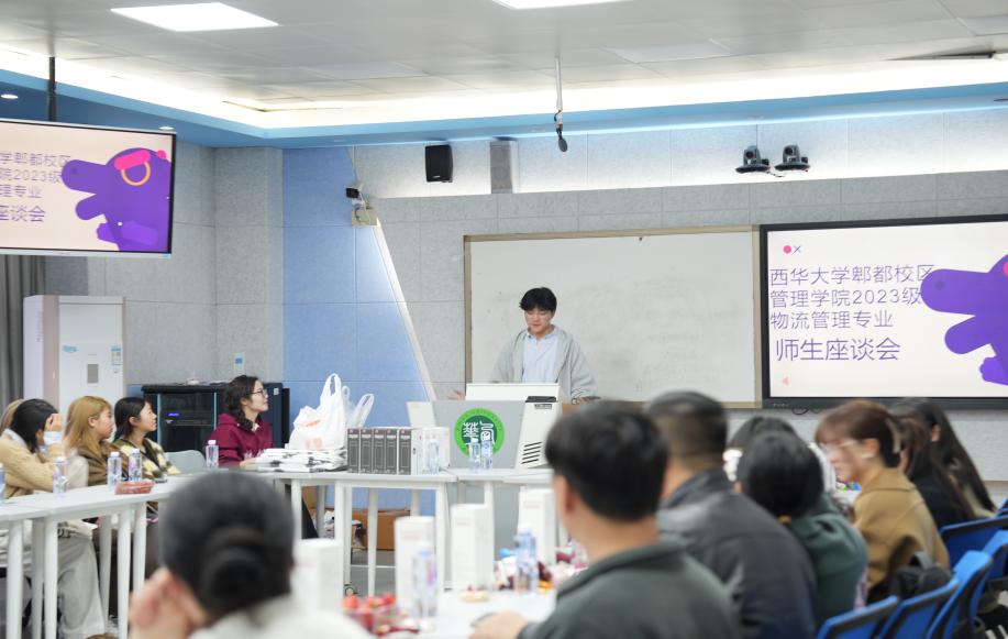 加强师生间的交流,增进彼此的理解,同时为物流管理专业发展提供新动力。320日晚7点,郫都校区5B410教室召开管理学院2023级物流管理专业师生座谈会。活动由2023级学生刘晓乐主持,管理工程系副主任谢寒,教师陈覃霞、张扬靖静、周靖悦、谭宇阳,辅导员李萌参加活动。此外,参加活动的还有四川顺丰速运科技有限公司彭州片区负责人季明轩,四川携行教育董事长陈斌(2005级物流管理专业校友暨校友代表)以及2023级物流管理专业全体学生。