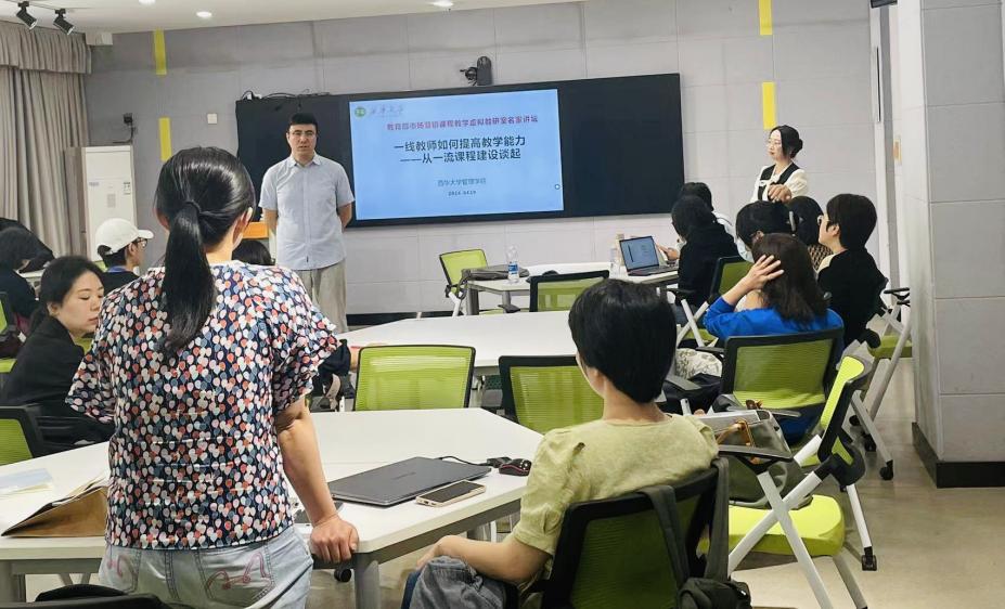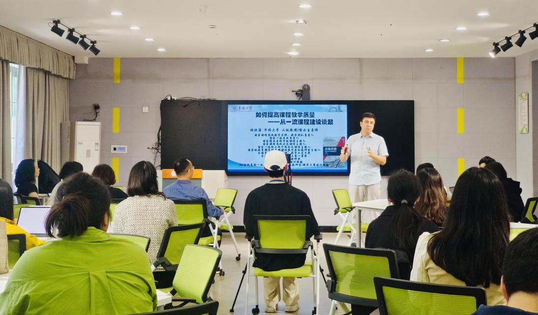 为迎接本科教育教学审核评估,提高一线教师教学能力,4月19日管理学院邀请到国家级《市场营销》课程教学虚拟教研室带头人,华侨大学二级教授、博士生导师、国家级教学名师、国家课程思政教学团队首席专家、霍英东全国青年教师奖获得者杨洪涛教授作“一线教师如何提高教学能力——从一流课程建设谈起”的专题讲座。本次活动由工商管理系副系主任刘丹萍主持,副院长牟绍波出席并致辞,40余名教师代表参加。