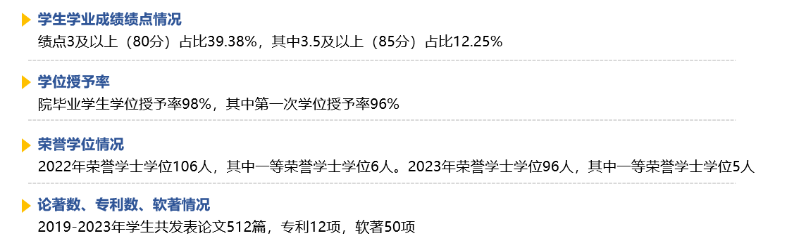 近4年,在校生获得国家奖学金23人,获得国家励志奖学金551人,获得学校及社会奖学金的有5981人次,优秀毕业生539人(其中省级优秀毕业生124人)。