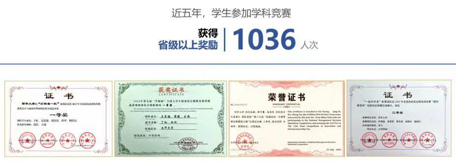 每次比赛都是一次锻炼,都是一次非凡体验。管院学子始终行而不辍,履践致远。近五年,学生参加学科竞赛获得省级以上奖励1036人次。