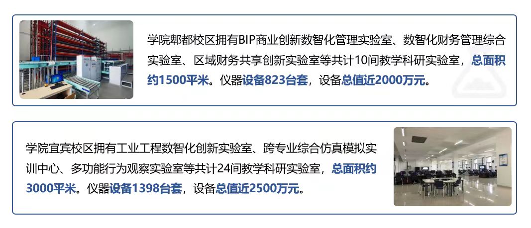 学院两校区共拥有实验室总面积约4500平米。仪器设备2221台套,设备总值近4500万元。