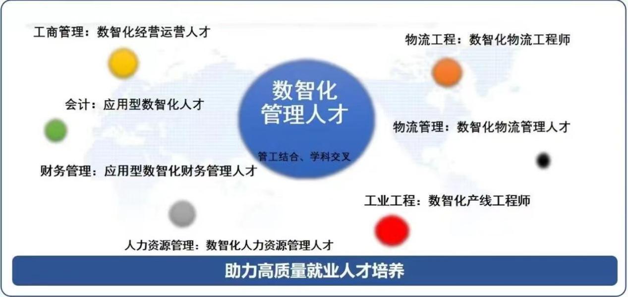 以数智化管理人才培养支撑学校高素质人才培养。数智化管理人才就是利用数字技术和数字化手段,着力培养数据处理能力、智能优化分析能力以及智能协同决策能力等,助力组织决策的管理人才。