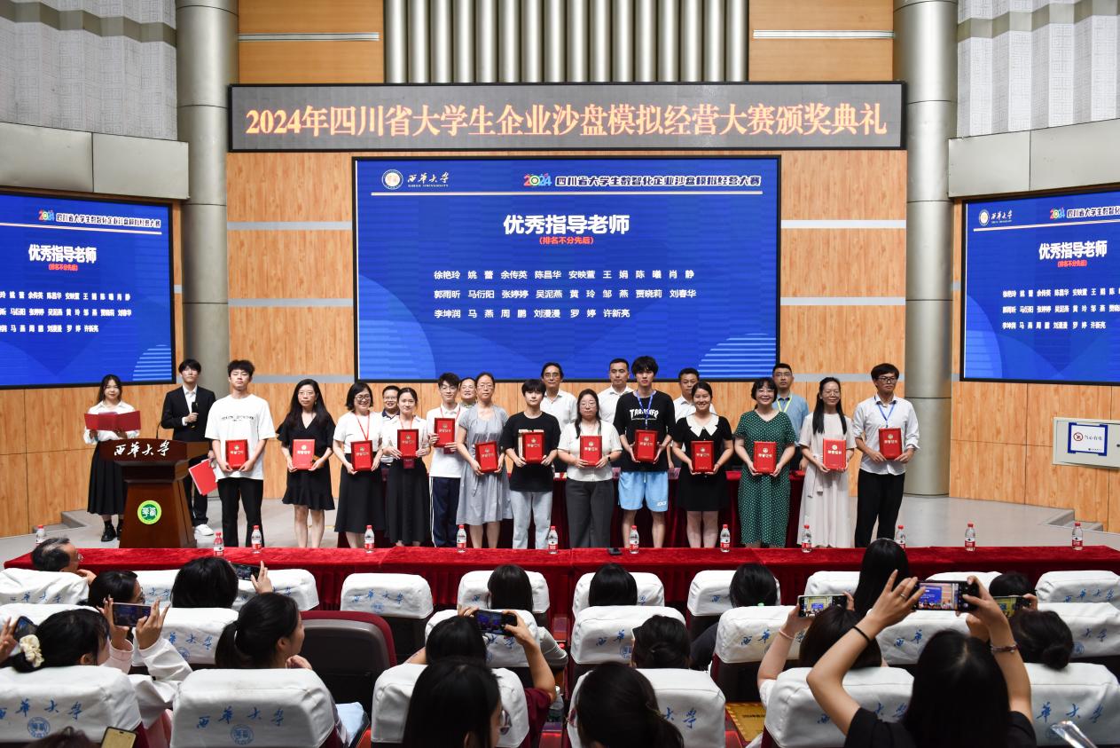 西南交通大学蒋玉石教授代表本次大赛的裁判组对比赛中各队伍的表现进行了点评。蒋玉石教授从专业的角度根据参赛选手的现场表现提出建议,希望同学们以赛促学,在今后的学习中加强对企业经营管理的深入理解。同时,表达了对此次大赛的认可及对各高校未来发展进步的真挚祝愿。随后,嘉宾们为各获奖队伍代表和优秀指导教师代表颁奖。
