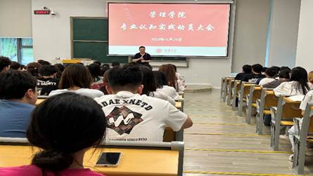 624日晚上,管理学院院长赵修文和工商管理系副系主任肖金岑赴宜宾校区召开2022级人力资源管理专业认知实习动员大会。赵修文引导学生明确了认知实习的目的和意义,对同学们提出了要认真总结实习收获,争取在实习中进步成长的期望,并再三强调了实习安全问题。