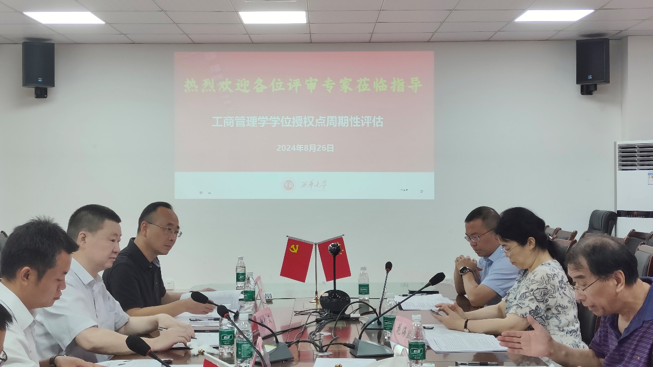 本次会议邀请了四川大学、西南交通大学、成都理工大学、西南石油大学、四川农业大学等5所高校的专家。会议由管理学院院长赵修文主持,副校长邵永波致欢迎辞,研究生院副院长、管理学院领导班子成员、学位点负责人、工商管理学学位授权点周期性评估工作组成员、系主任、教师导师代表和研究生代表等20余人出席了会议。