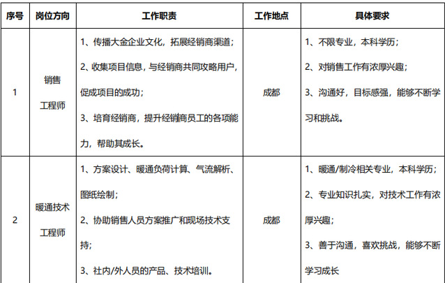全球销量第一的空调企业——大金开始招募 2021 届小伙伴啦!中西部各地技术、销售岗位期待你的加入!