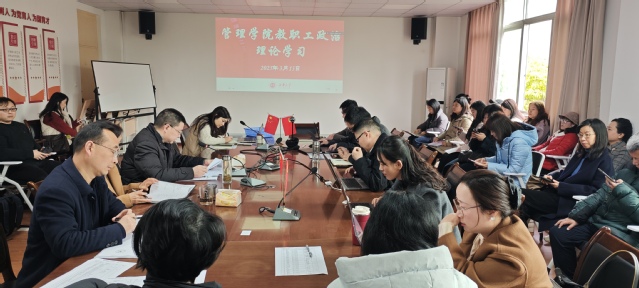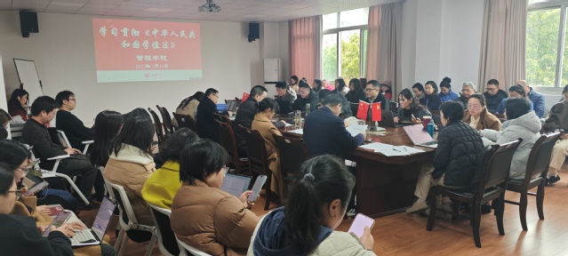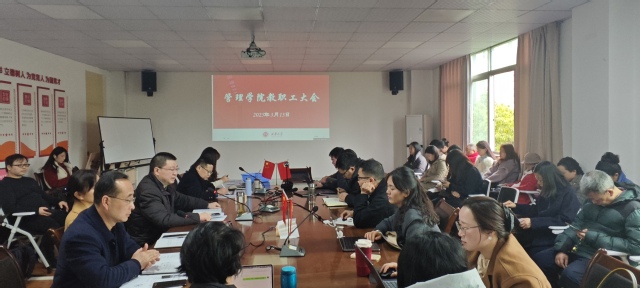 3月13日下午,管理学院在3E-402召开教职工大会暨政治理论集中学习会。会议由院长赵修文主持,全体教职工参会,宜宾校区教职工线上集中参会。