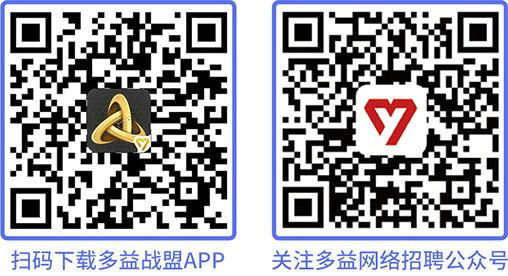 关注多益招聘公众号(duoyijobs),获得最新校招资讯、和HR实时互动。