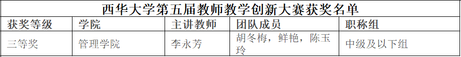 在betway88西汉姆联第五届教师教学创新大赛中,李永芳教师团队荣获三等奖。我院在此项比赛中连续四届均取得好成绩。