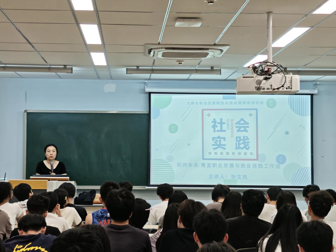 本次由讲座在职业生涯规划与社会实践领域经验丰富的张文凤老师担任主讲人。张文凤老师强调了社会实践在大学生职业生涯规划中的关键作用,指出社会实践不仅能帮助同学们积累实际工作经验,更能让大家提前了解社会需求,明确自身职业方向。