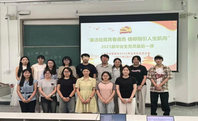 岁月如流,时光荏苒。为了进一步强化党支部建设,发挥优秀毕业生党员先锋模范作用,6月12日上午10:00,人力资源管理与ACCA专业本科生党支部在4A-206召开了主题为“星火映前路,扬帆启新程”2025届优秀毕业生党员分享会暨2025届毕业生党员“最后一堂党课”。本次大会由王思钰同志主持,支部全体党员同志以及低年级学弟学妹参加。