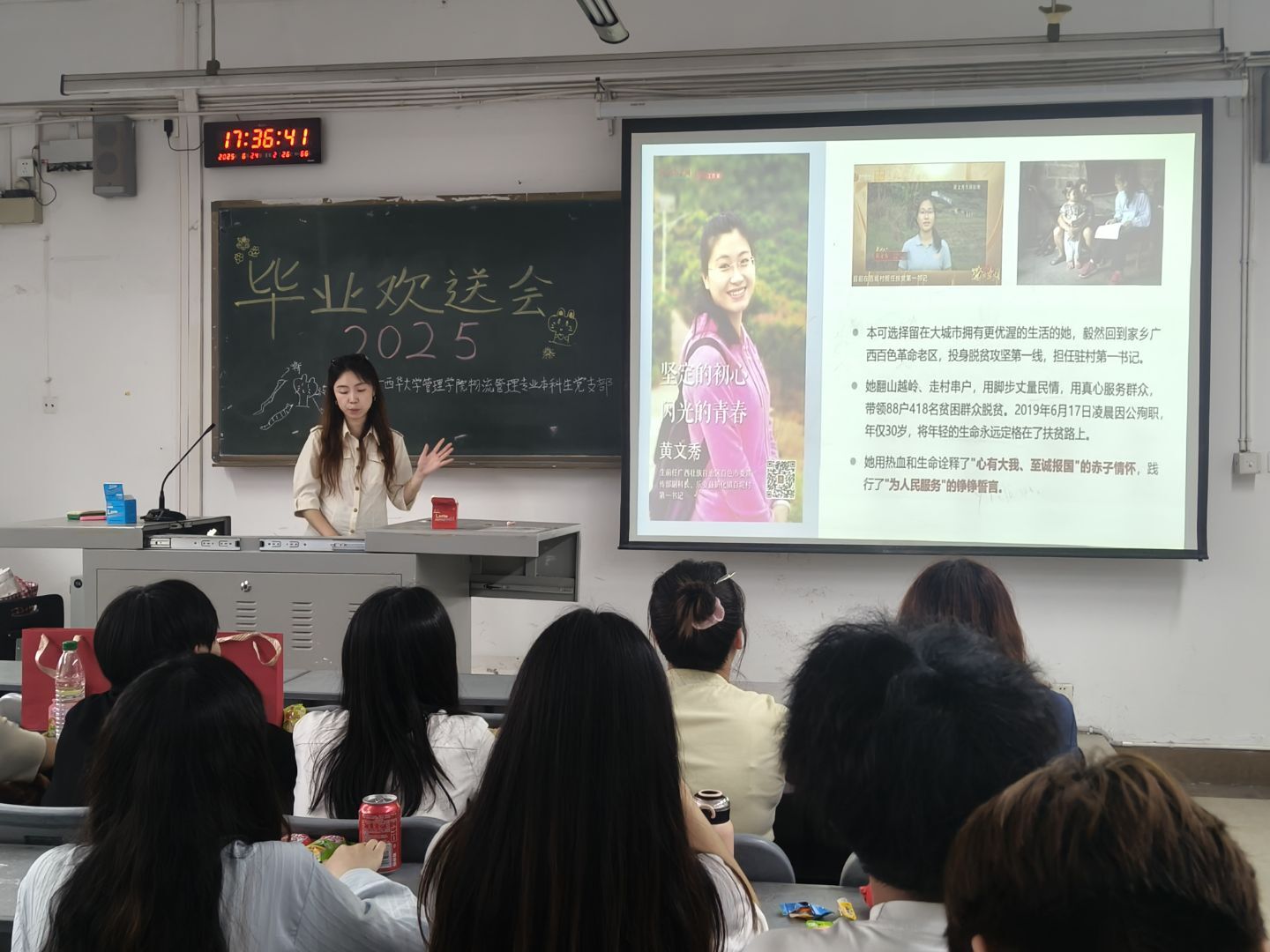 为表达对毕业生党员的关怀与祝福,激励他们牢记党员身份、勇担时代使命,西华大学管理学院于6月24日星期二15:30在5B-212隆重举行2025届党员毕业生欢送会。支部书记李思琪、全体毕业生党员及全体新生党员参加了此次活动。 首先,毕业生党员依次发言,回顾了在党组织的培养下成长的经历,表达了对母校和师长的感激之情,并承诺“无论走到哪里,都将以党员标准严格要求自己,为社会贡献青春力量”,现场响起了阵阵掌声。