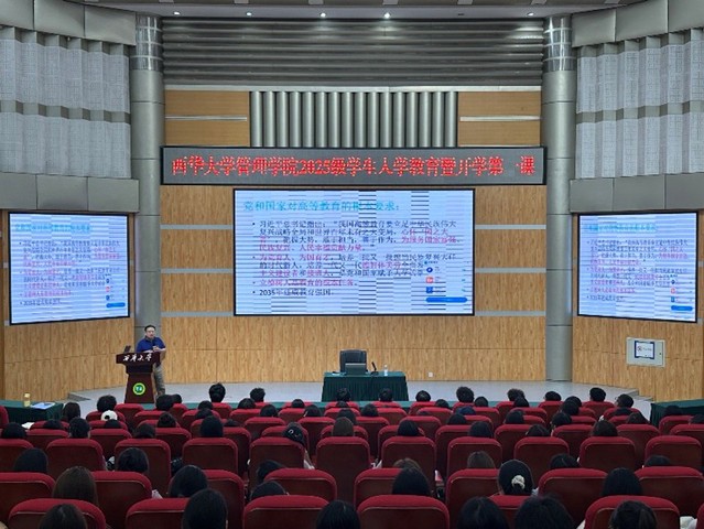 9月12日下午,betway88西汉姆联管理学院2025级本科新生入学教育暨开学第一课在四教学术报告厅隆重举行。院长赵修文教授、副院长姚世斌教授出席活动并为全体新生作专题讲座,讲座由新生辅导员朱力主持。