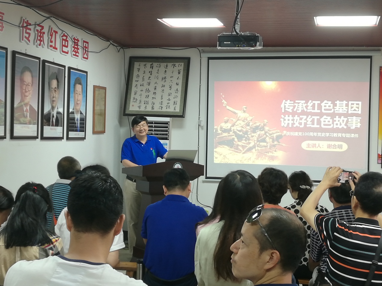 党课学习环节,长征书院院长、创始人李崎为大家介绍了长征书院的创建史,管理学院执行院长谢合明同志为全体党员同志讲授了一堂生动的《传承红色基因,讲好红色故事》党史学习教育专题党课。他从讲红色故事、红色故事中的力量、如何讲红色故事三个方面进行了生动讲解,并号召党员同志在党史学习教育中要发扬红色传统,加强红色教育,讲好红色故事,传承红色基因,赓续红色血脉,为新时代高质量发展凝聚磅礴力量,提供强大精神动力。