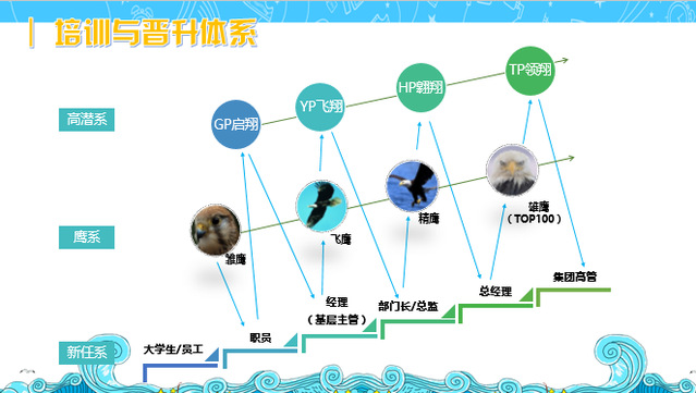 TCL速必达希杰采用“鹰之系列”人才培养体系,分为雄鹰计划、精鹰工程、飞鹰计划和雏鹰工程四个部分,代表对不同阶层优秀领导者的培养。其中“雏鹰工程”主要培养对象为新入职大学生,对他们进行企业文化和工作技能培养,使其尽快融入企业和社会。