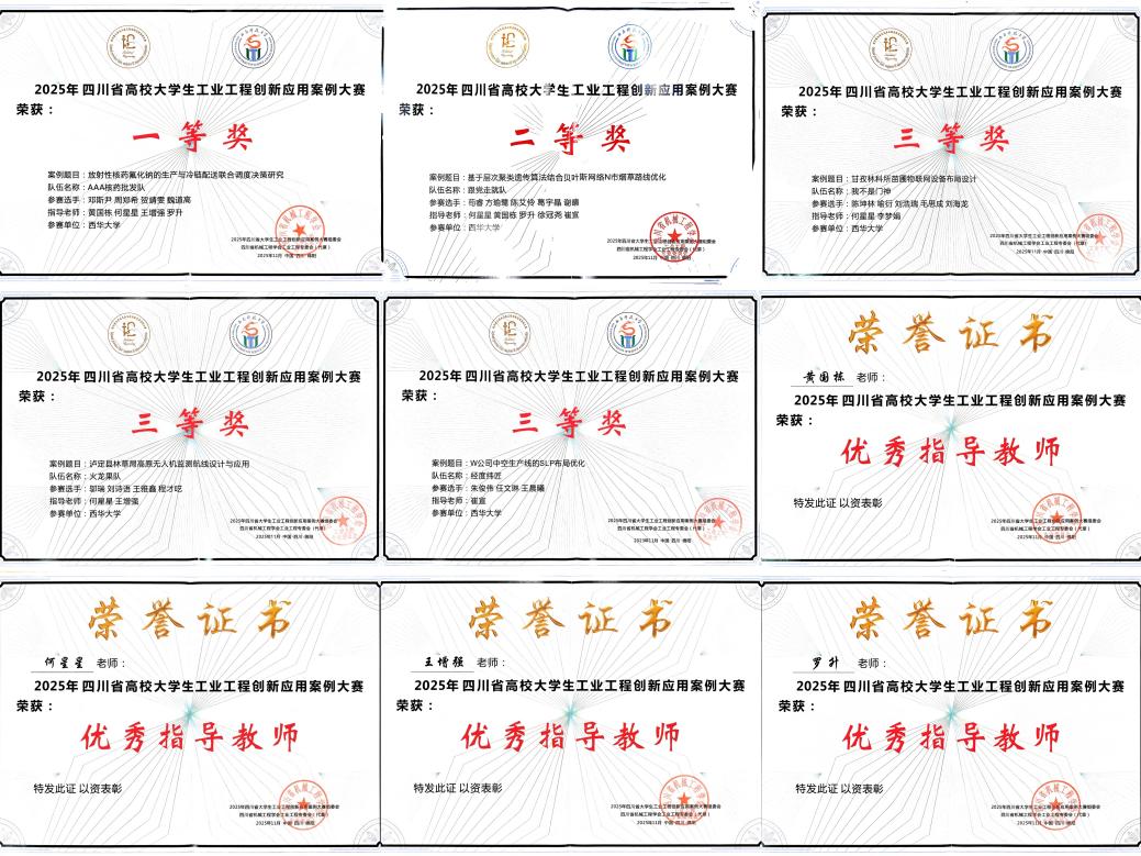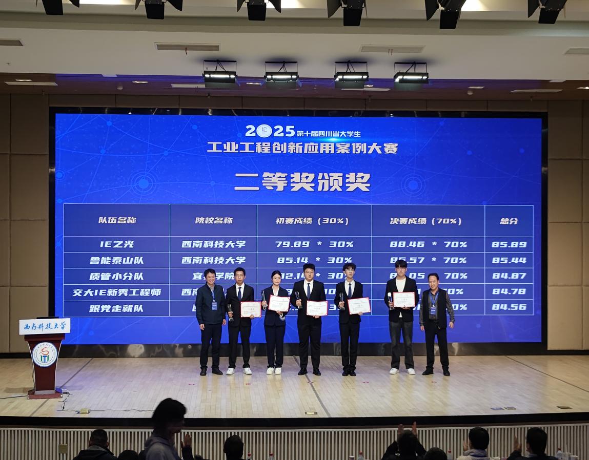 20251115日,由四川省教育厅主办、西南科技大学承办的第十届四川省大学生工业工程创新应用案例大赛(决赛)在西南科技大学成功举办。本届大赛将学生创新实践与国家级一流本科专业建设研讨会相结合,搭建了产教深度融合的高水平平台,展现了四川高校在卓越工程师培养方面的创新探索。在我校工业工程专业师生共同努力下,共取得一等奖1项,二等奖1项,三等奖3项的优异成绩。