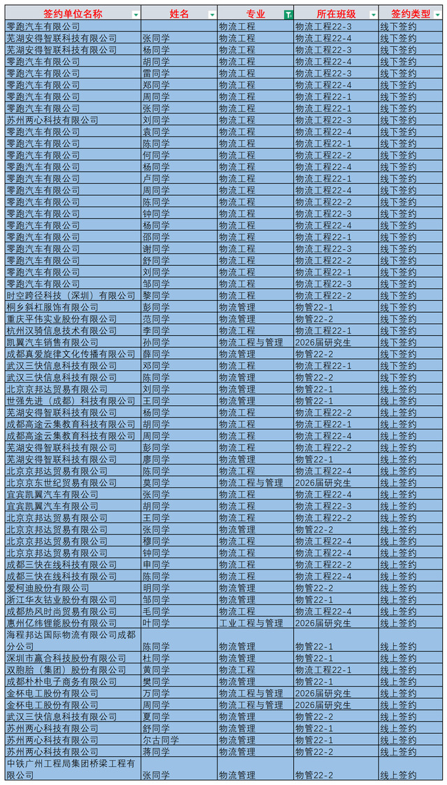 签约喜报-betway88西汉姆联管理学院物流工程、物流管理专业2026届毕业生签约喜报(1期)