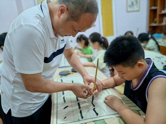 图1 书法老师辅导小朋友写字