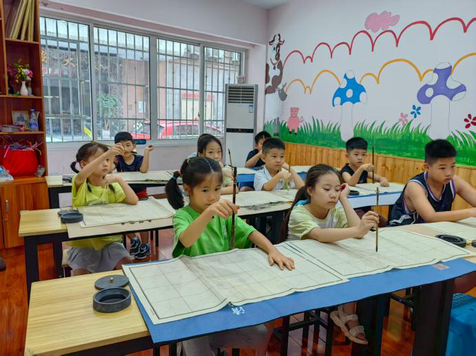 图2 小朋友们练习书法握笔