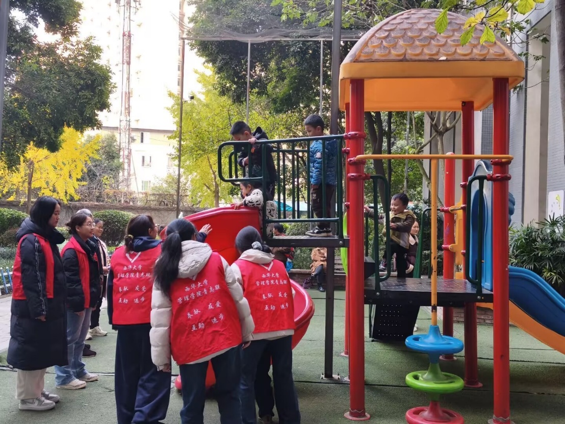 一群热心的志愿者们齐聚社区活动中心,与小朋友们共同度过了一段难忘的欢乐时光。大家一起进行折纸、粘土制作、滑滑梯、搭积木、画画等游戏。活动现场,孩子们的笑声和欢呼声此起彼伏。在手工制作区,志愿者们耐心引导孩子们使用彩纸、黏土等材料进行创作,孩子们认真投入,发挥想象力,制作出了一个个生动可爱的手工作品。在积木搭建区,孩子们分组协作,共同搭建出各式各样的“奇思建筑”,这不仅提升了他们的动手能力,还在合作中增强了团队默契和集体意识。绘画区内,孩子们用画笔勾勒出心中的“理想世界”,一幅幅色彩斑斓的画作,传递着他们对生活的热爱和对未来的憧憬。整个活动室内洋溢着轻松愉快的氛围,欢声笑语此起彼伏,感染着在场的每一个人。把视角转向户外,孩子们在滑梯上欢快地滑行,在平地上嬉戏玩笑……他们舒心地享受着这段温暖而快乐的时光。“四点半课堂”是“双向成长的纽带”——一方面,孩子们积极参与活动,充实了课余生活,提升了动手、创造和表达力;另一方面,志愿者在实践中锻炼成长,提升了沟通协调能力,培养了耐心与责任心。