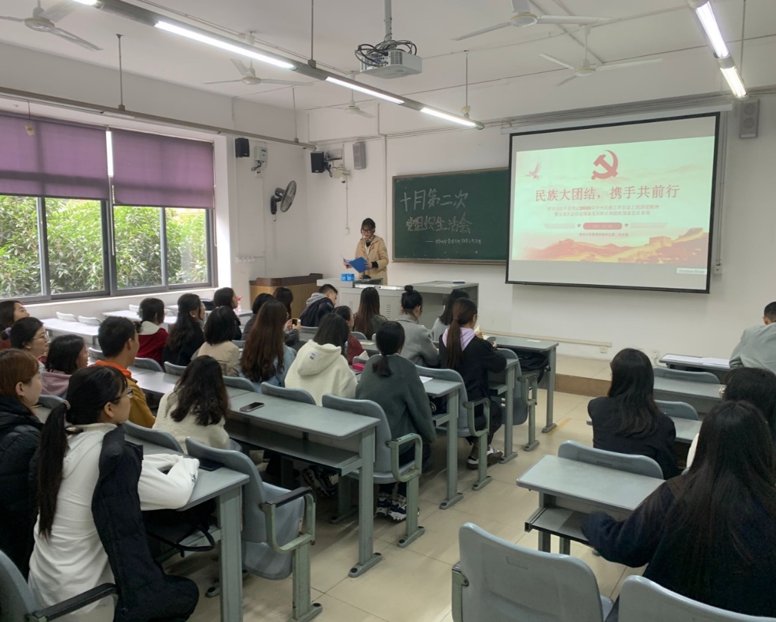 为深入学习习近平总书记2021年中央民族工作会议上的讲话精神,和支部大会讨论接收刘紫薇等5名同志为中共预备党员,2021年10月26日中午12:20,管理学院学生第二党支部于5B-206召开了党组织生活会。会议由支部李秋杭同志主持。