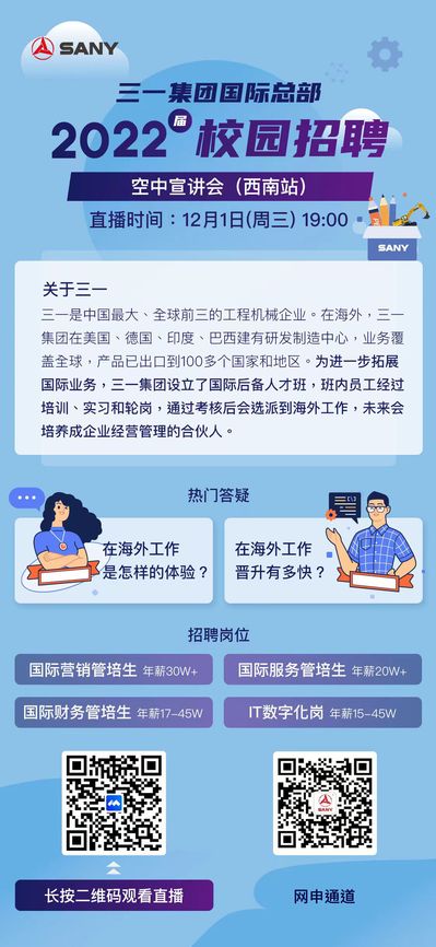 三一集团2022校园招聘空中宣讲会(西南站)火热来袭!