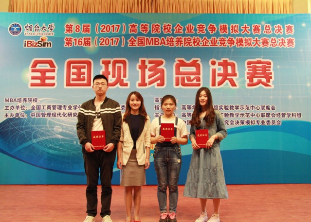 4月29日,第八届(2017)全国高等院校企业竞争模拟大赛暨第十六届全国MBA 培养院校企业竞争模拟大赛在烟台大学落下帷幕。由工商管理学院方基云、奉芳英和范莉三位同学组成的betway88西汉姆联代表队,在工商管理学院学科竞赛指导老师王映玥的带领下,荣获全国一等奖。