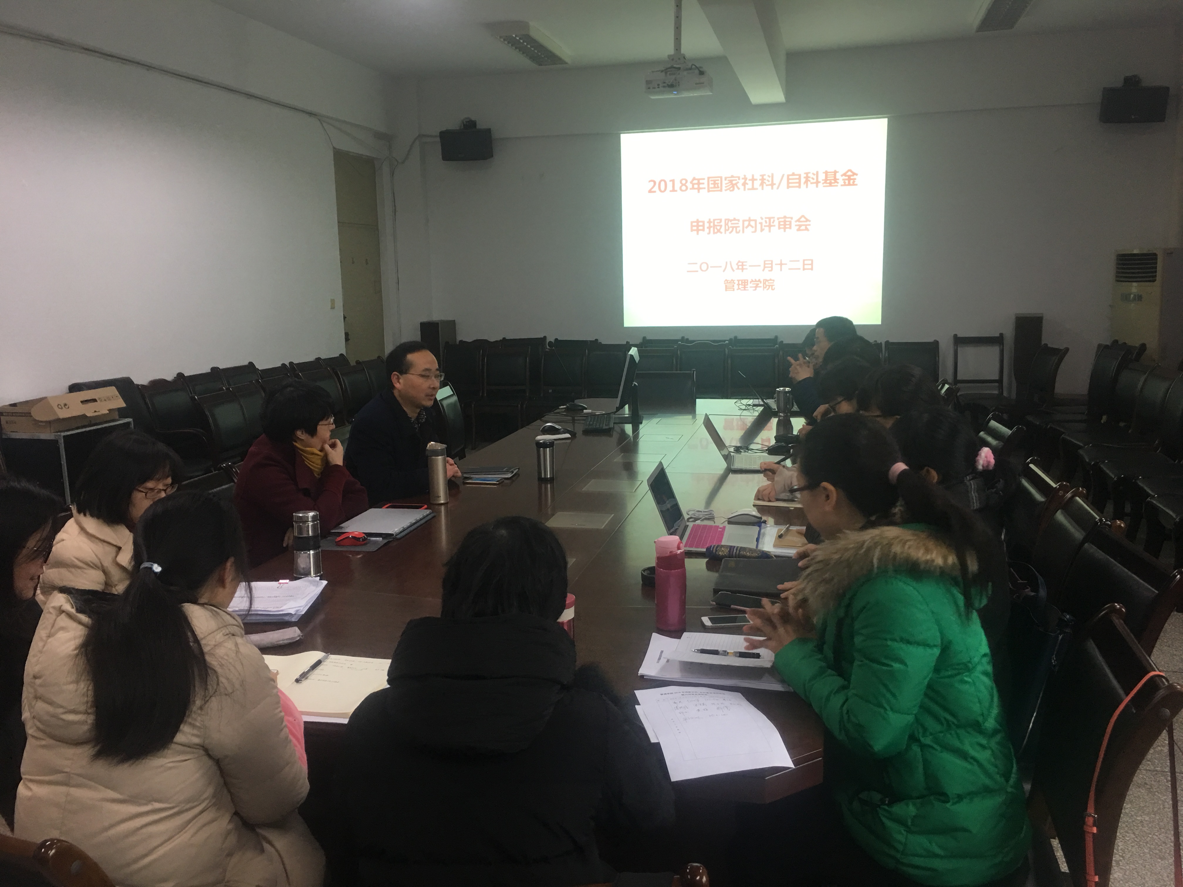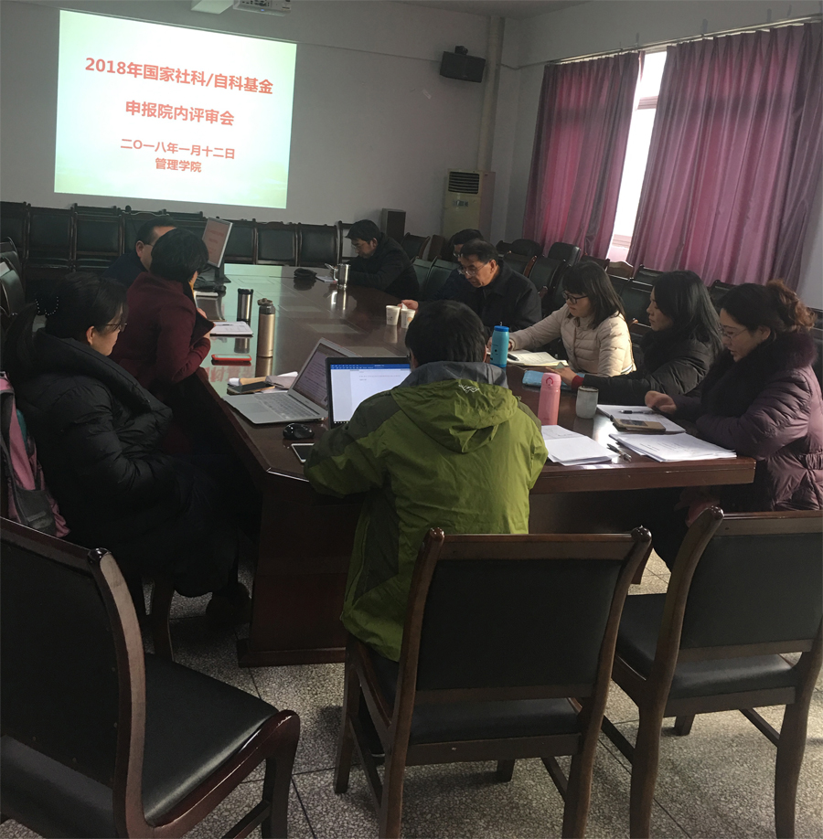 1月12日上午9:00,管理学院2018年国家社科/自科基金申报评审会在学院3E-402会议室举行,会议由管理学院副院长牟绍波主持,校内外评审专家、科技处工作人员及2018年国家基金项目申报人员参加了会议。