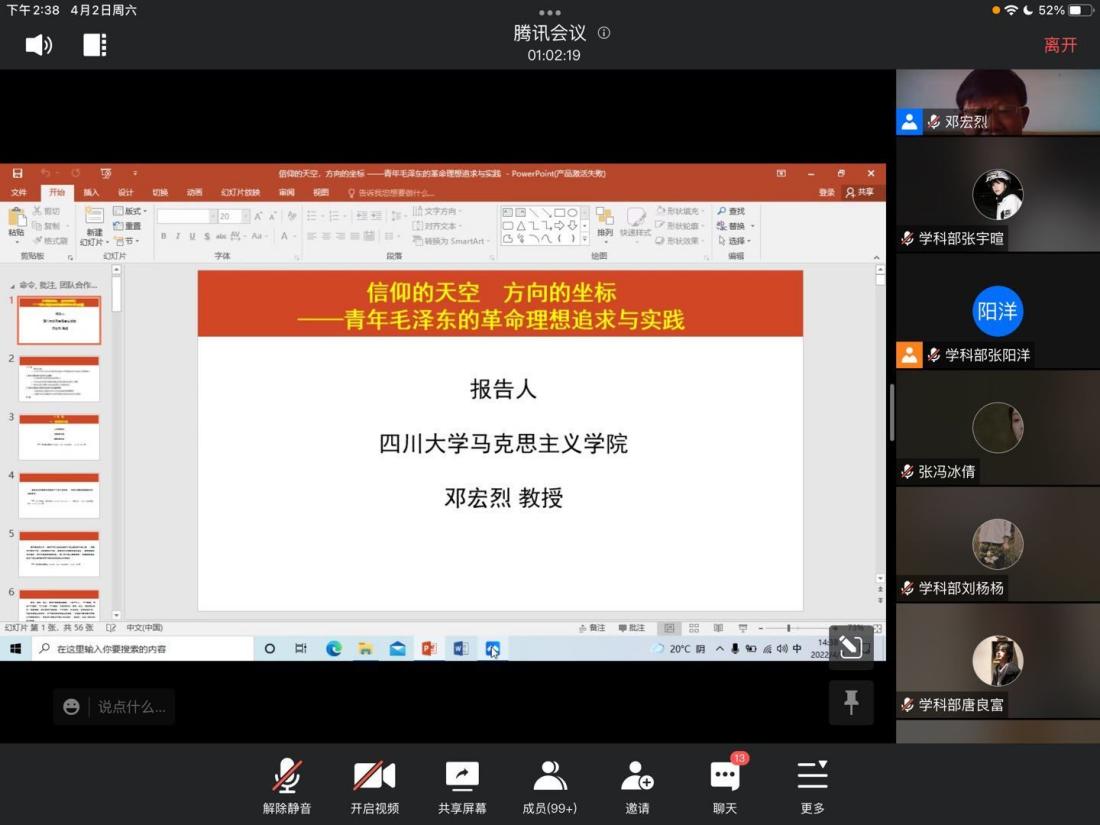 4月2日下午,betway88西汉姆联管理学院在腾讯会议以线上形式举办以“信念的天空 方向的坐标——青年毛泽东的革命理想追求与实践”为主题的西华讲堂。