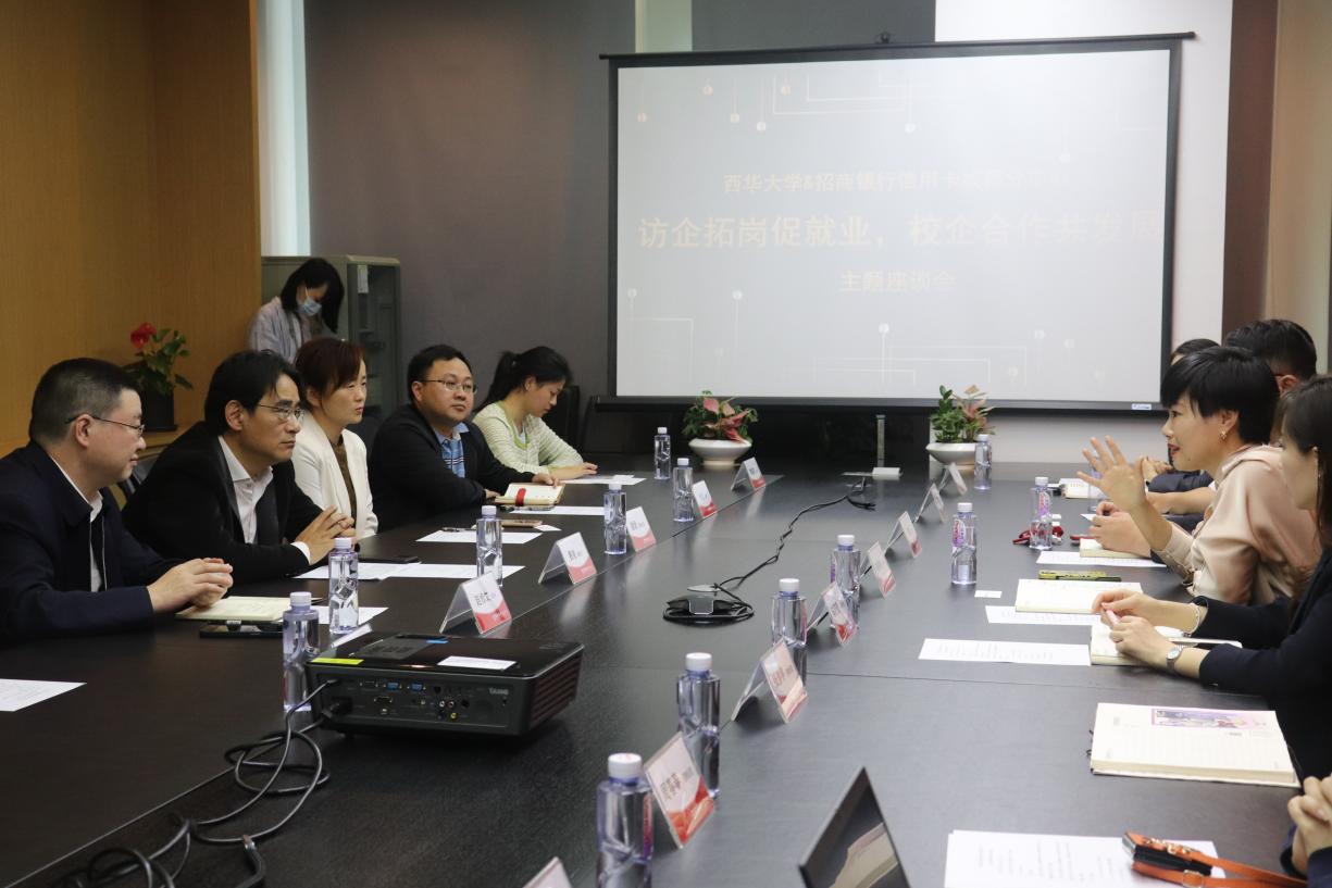 为贯彻党中央、国务院关于高校毕业生就业工作的决策部署,落实教育部《关于开展全国高校书记校长访企拓岗促就业专项行动的通知》,进一步深化校企合作,5月17日,副校长费凌带队,管理学院院长赵修文、副书记谢君、就业联系人及辅导员代表参加,赴招商银行信用卡成都分中心调研交流,与招商银行信用卡成都营运中心总经理易晓艳、成都分行羊犀支行行长郭木愚、锦江支行行长曾妮、交互二室主管张虎、人事主管陈晓萱、招聘经理代表等进行座谈。双方就人才培养、毕业生就业、实习实训、建立常态化合作机制等进行深入交流。