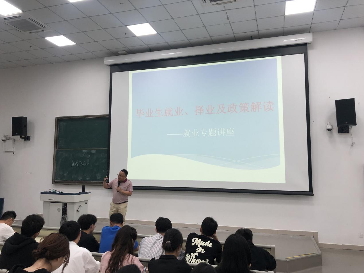 随后,任浩老师为同学们提出了两点重要建议:一是要做好求职资料的准备和求职时的心理准备,稳定好自己的择业心态,提高自我认知;二是要瞄准就业黄金期,充分把握校园招聘的机会。