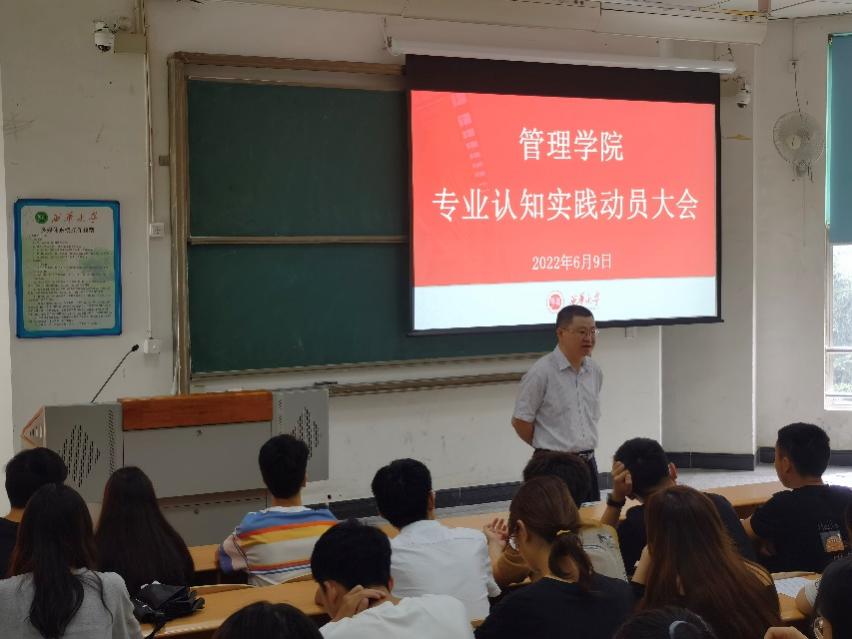 6月9日上午,管理学院于4A307教室召开2020级工商管理专业、人力资源管理专业认知实践动员大会。院长赵修文出席此次大会,全体带队教师和150余名学生参加。会议由工商管理系系主任丁灿主持。