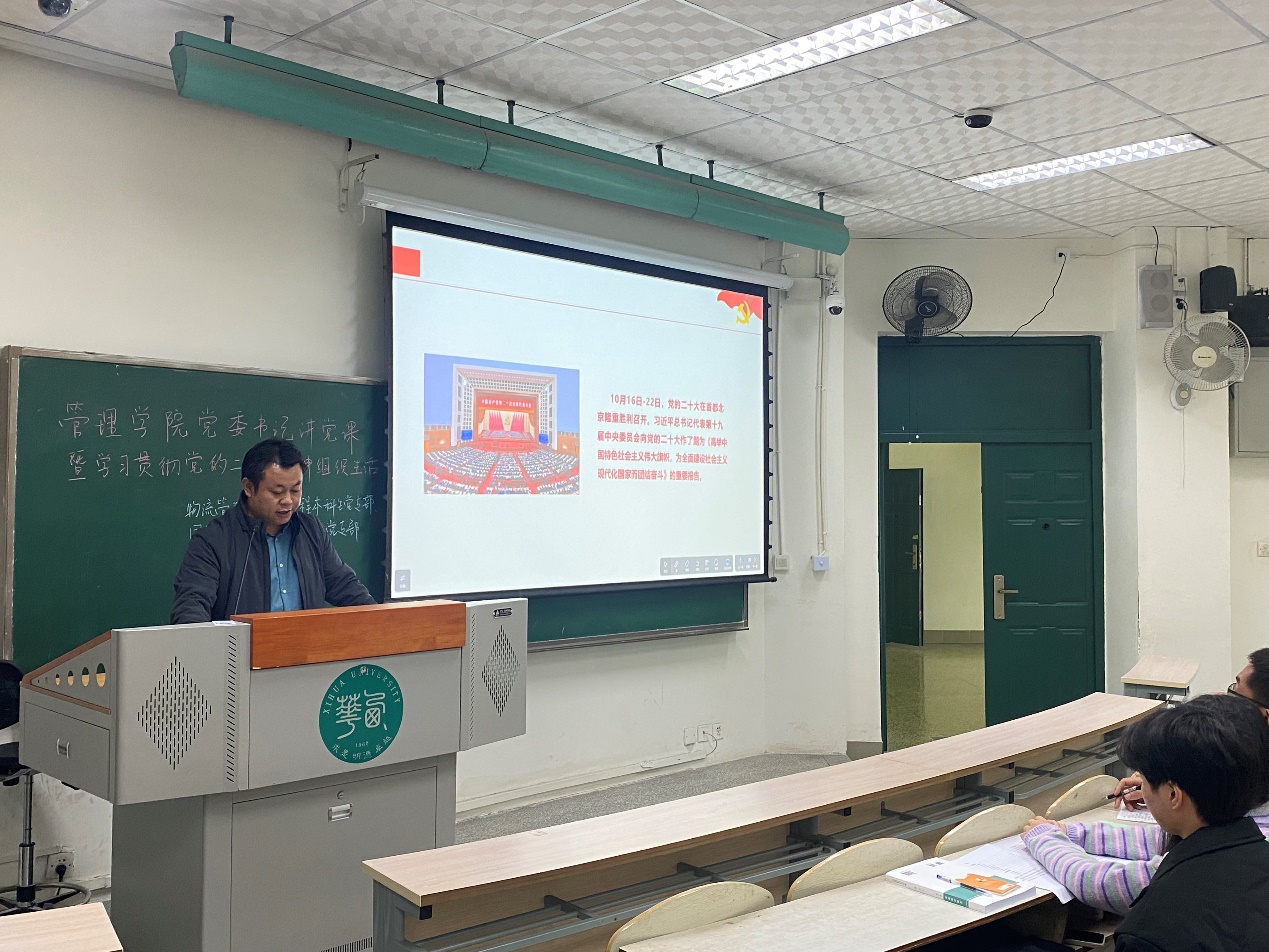 “乘风华正茂之东风,砥砺勇毅前行之初心”,为学习宣传贯彻党的二十大精神,2022年11月17日下午16时,betway88西汉姆联国际经济与管理研究院研究生党支部和物流管理与物流工程本科生党支部在3B301教室联合开展学习二十大精神组织生活会。管理学院党委书记肖东华出席会议,两支部全体党员参加会议。物流管理与物流工程本科生党支部书记李思琪主持会议。