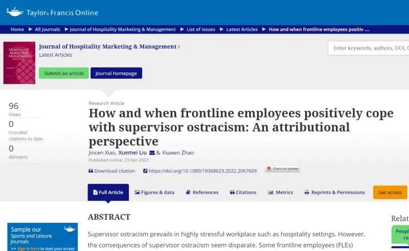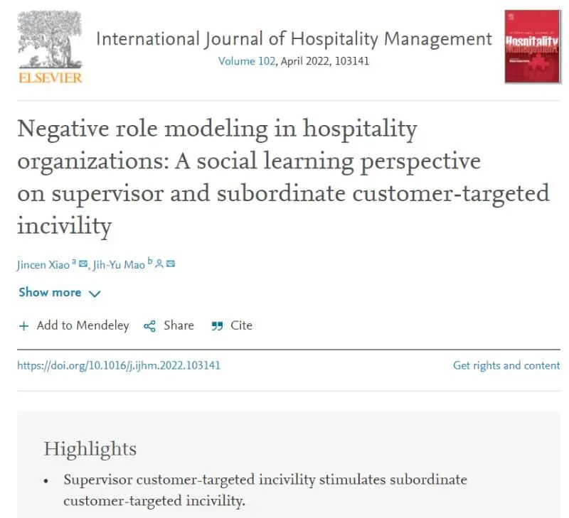 肖老师的研究领域包括领导力、组织-员工关系、员工绿色行为、知识管理等,相关研究成果发表在Journal of Organizational Behavior,International Journal of Hospitality Management,Journal of Hospitality Management and Marketing, Creativity Research Journal等SSCI一区和二区期刊。同时,在《研究与发展管理》、《科学学与科学技术管理》等CSSCI收录期刊发表十余篇文章。