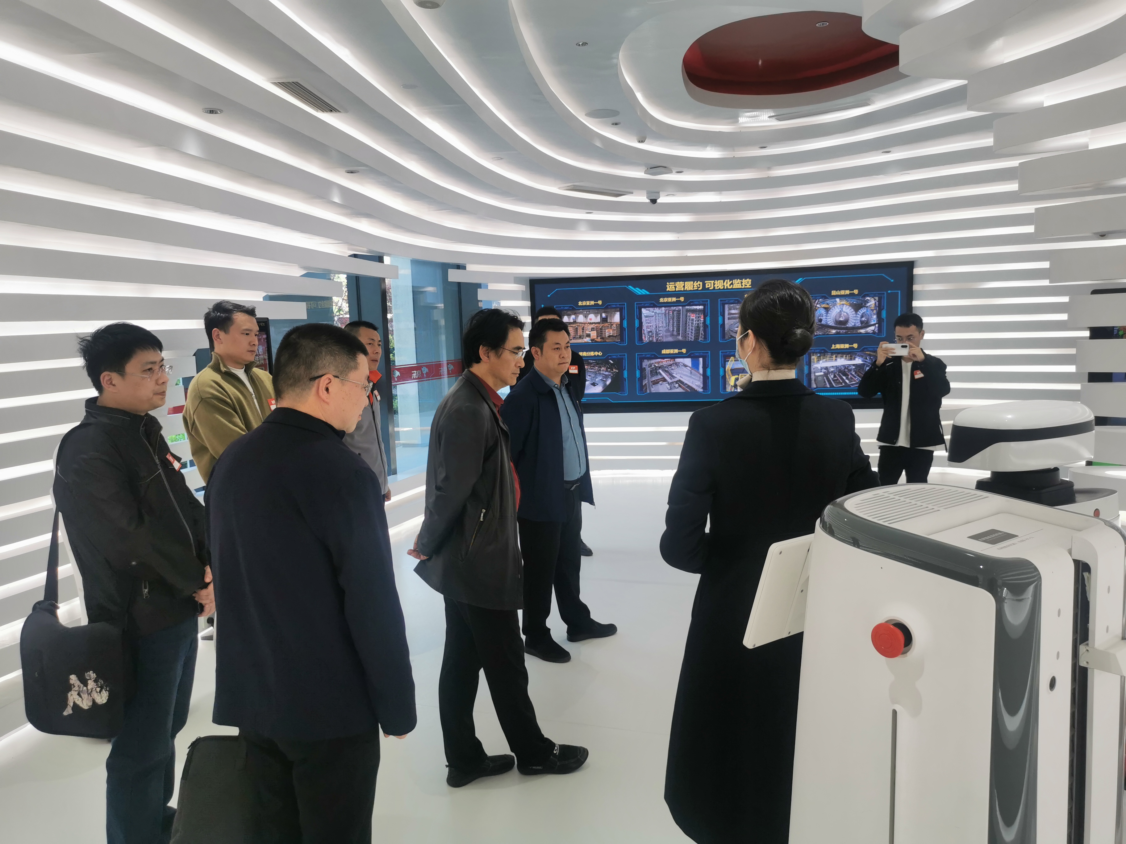 座谈会前,全体参会人员在京东西南分公司教育业务大区负责人张锦可的陪同下,参观了京东西南总部的办公环境、党建室、职工餐厅和仓储运行实时监控情况。