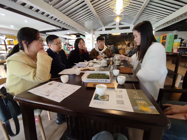调研期间,张忆萍为调研组介绍了雅安名山茶叶市场的基本情况、四川早春甘露茶叶有限公司的运营模式以及品牌现状。中国制茶大师、蒙顶黄芽非遗传承人张强讲述了早春甘露绿茶独特的制作工艺,还特地介绍了千年皇家贡茶、中国黄茶极品——蒙顶黄芽的传统制作技艺。调研组与企业方进行了深入交流,提出企业立足目前业务可更多进行创新,将茶文化与茶旅游相结合,实现农商文旅体协同发展,为雅安名山乡村振兴提供坚实基础。