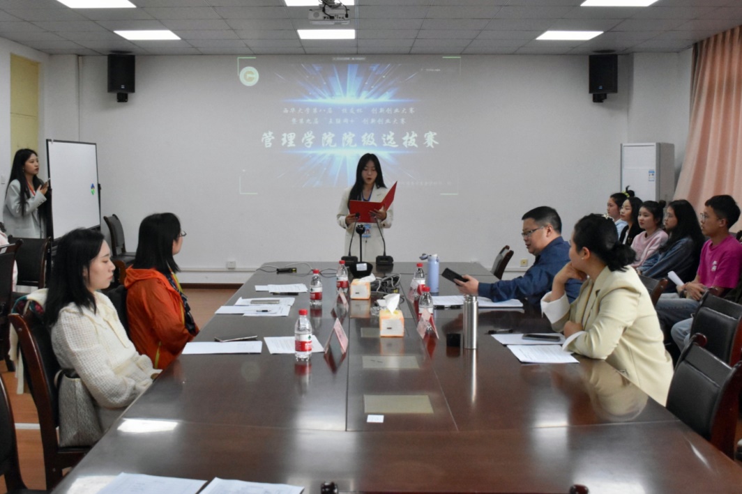 本次比赛,共收到48个参赛项目,郫都校区26项,宜宾校区22项。4月21日,学院组织专家评委对所有参赛项目进行初评。4月22日,学院对排名前30的项目组织了路演。管理学院副院长姚世斌,教师杜欣、谢寒、胡栩铭、陈怡我参会并担任评委。
