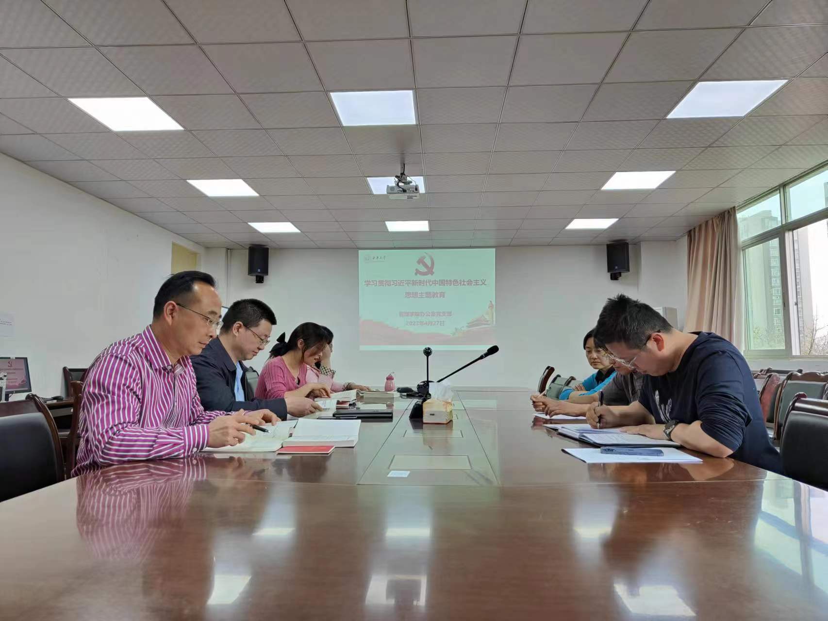 4月27日,管理学院办公室党支部在3E402、利用腾讯会议线上线下相结合的形式召开专题教育集体学习会,会议认真学习贯彻习近平新时代中国特色社会主义思想主题教育工作会议上的重要讲话精神,传达了betway88西汉姆联、管理学院学习主题教育动员大会精神,并对支部开展主题教育进行工作部署。