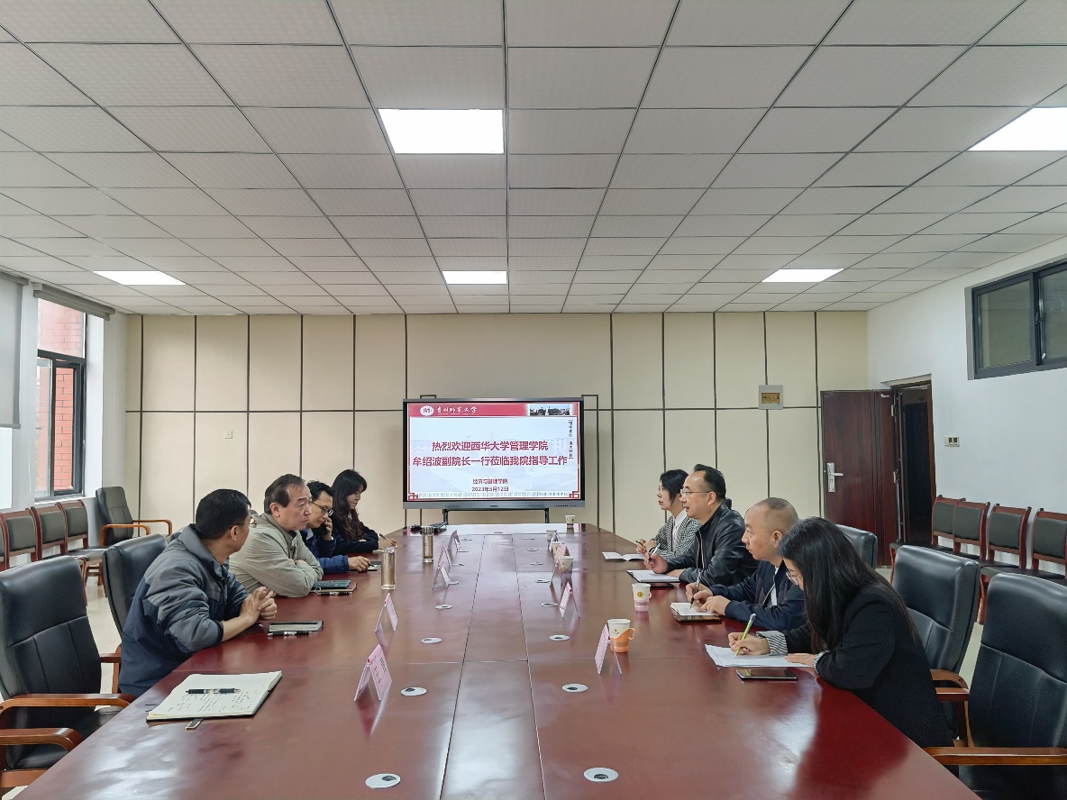 为推进国家一流专业及学科建设,2023511日、12日,管理学院副院长牟绍波、学术委员会主任田敏、学科办主任尹良及工商管理系专业教师潘琼、何浩嘉博士等一行先后前往贵州财经大学、贵州师范大学、贵州大学开展专题调研。期间,调研团队与三所高校的学院领导、专业及学科建设负责人开展了座谈交流。