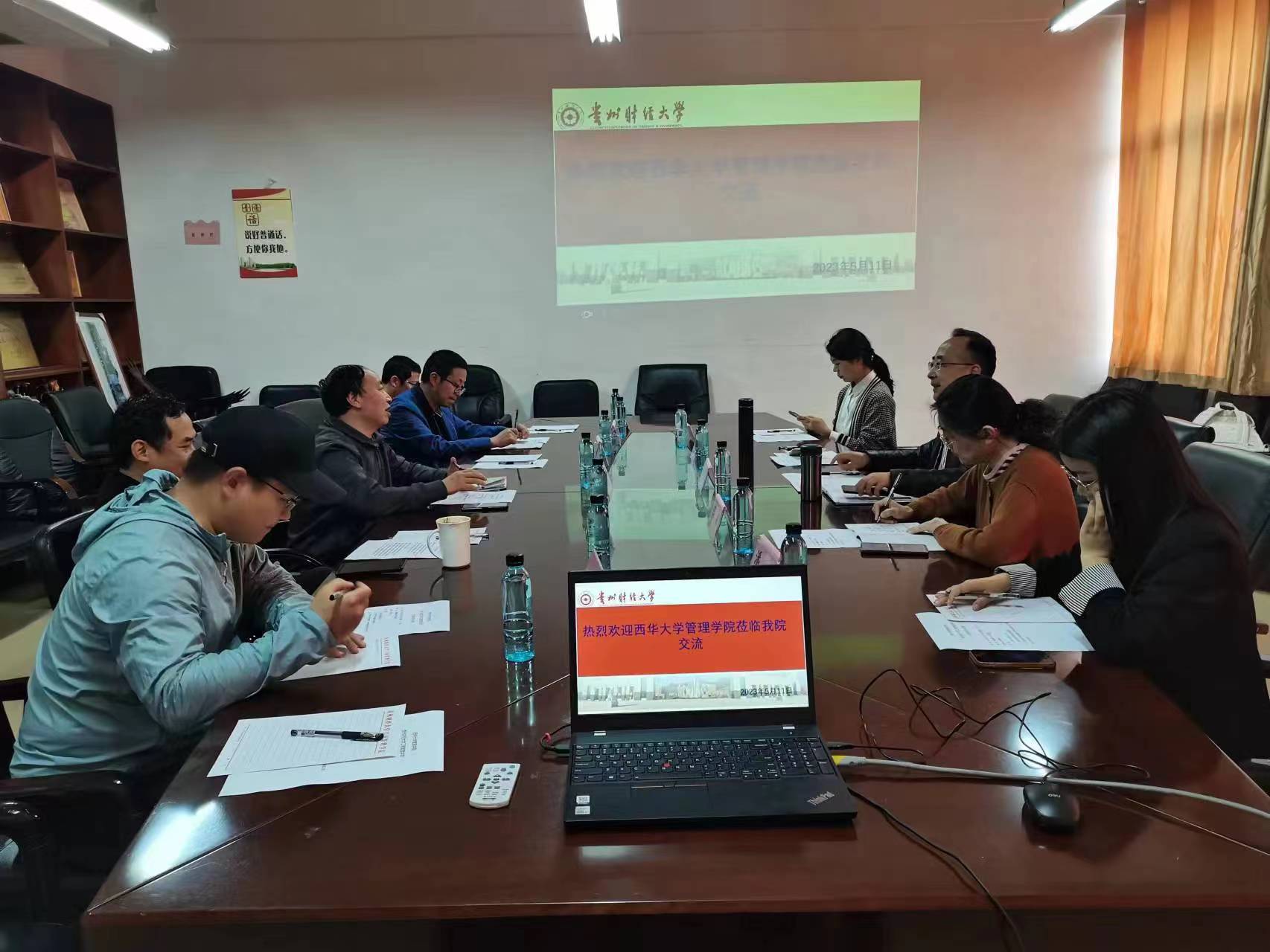 512日上午,调研团队先行前往贵州师范大学,王立伟副院长就经济与管理学院专业及学科建设情况进行介绍之后,市场营销系陈英葵教授着重从特色化、差异化发展介绍了专业和学科建设,强调了产教融合协同育人,系主任王玮侧重交流了教学中的“思专创”融合和大数据市场营销的专业发展构想。