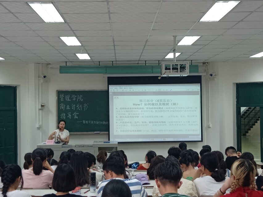 首先,陈怡我老师从市场现状和行业背景出发,通过对于创业项目的具体阐述、问题思考以及财务预测和融资计划四个方面的具体介绍,为同学们系统的讲解了如何写好一份商业计划书。紧接着,陈怡我老师就现场答辩的相关技巧为大家进行了详细阐述,通过对于整个答辩PPT的制作和答辩人讲述方式选择的介绍,使大家对于现场答辩有了更加深入的了解和认识。最后,陈怡我老师从自身经历出发,鼓励同学们积极参与本次大赛和其他相关的创新创业类赛事,以真正做到个人的全面发展。