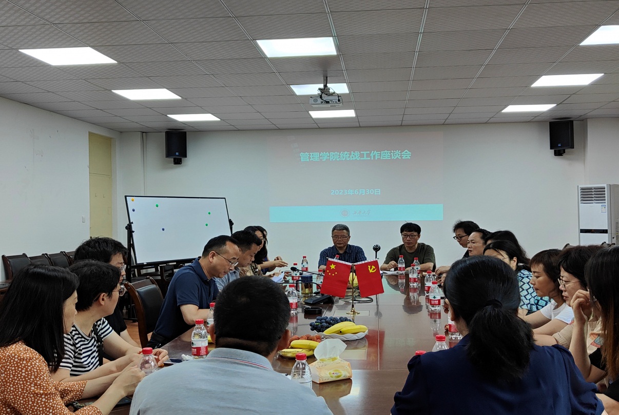 2023630日,管理学院在3E402会议室召开了统战工作座谈会。学院党委书记肖东华出席会议,学院民主党派人士、无党派人士、党外知识分子代表参加了会议。会议由学院统战委员、副院长牟绍波主持。